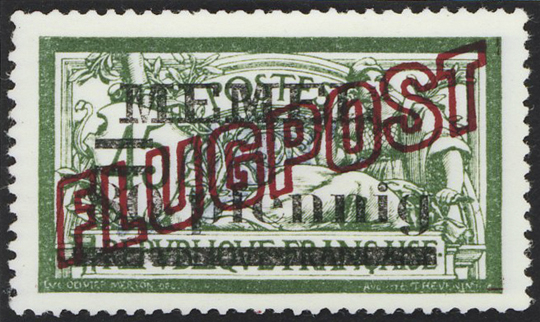Von Mi.-Nr. 40-45 sind Probeaufdrucke "FLUGPOST" bekannt, der Aufdruck läuft von links unten nach rechts oben (Aufdruck in mehreren Farben bekannt)
