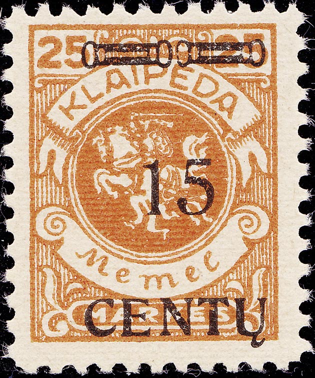 Von der für diese Ausgaben gesetzten 100er Platte konnten natürlich nur die Balken weiterbenutzt werden. Für den Höchstwert wurde nun "LITAS" statt "CENT." eingesetzt. Für diesen Höchstwert brauchte man auch eine dickere Type der "1", die "1" der 10 CENT. war zu dünn. Und wieder trat das Problem auf, dass in dieser kleinen Druckerei nicht genügend, vor allem einheitliches Setzmaterial vorhanden war. Es wurden alle möglichen Typen einer "1" zusammen gebracht. So kam es zu diesen vielen unterschiedlichen Zifferntypen, die auch noch z.T. beschädigt waren oder während des Druckes verletzt wurden. Dadurch ist die Zuordnung nicht immer leicht.