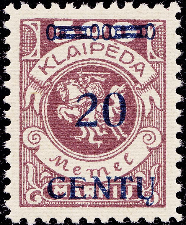 Feld: I/38 "K" in KLAIPEDA links gebrochen Feld: III/15 rechte Ecke im Unterrand abgeschliffen Feld: III/80 "K" in KLAIPEDA in rechtem oberen Strich mit Durchbruch Feld: IV/10 rechte obere Ecke stark abgeschliffen