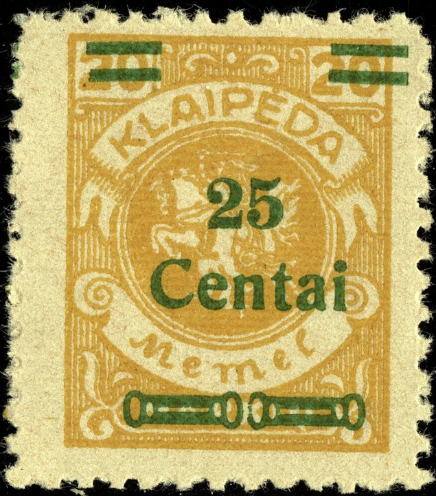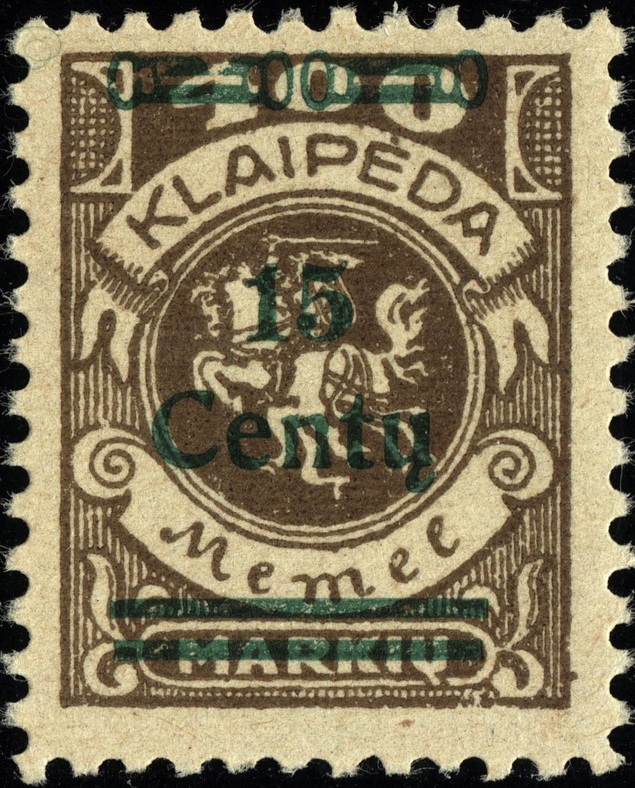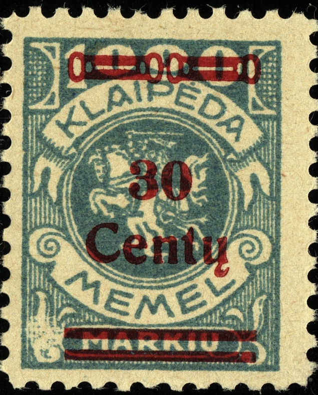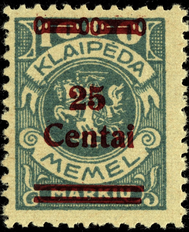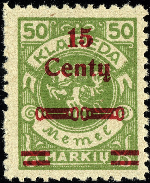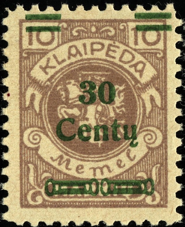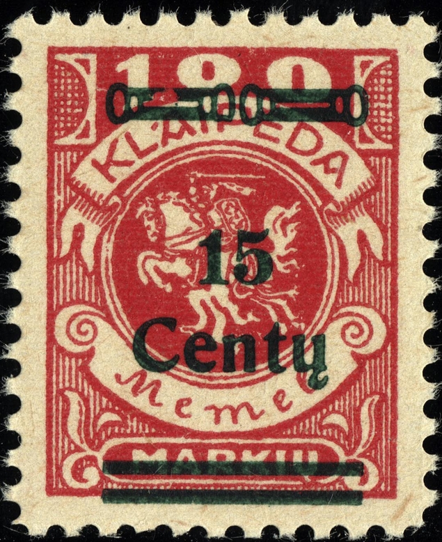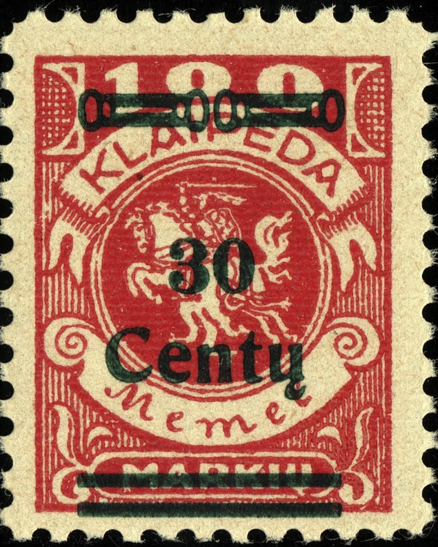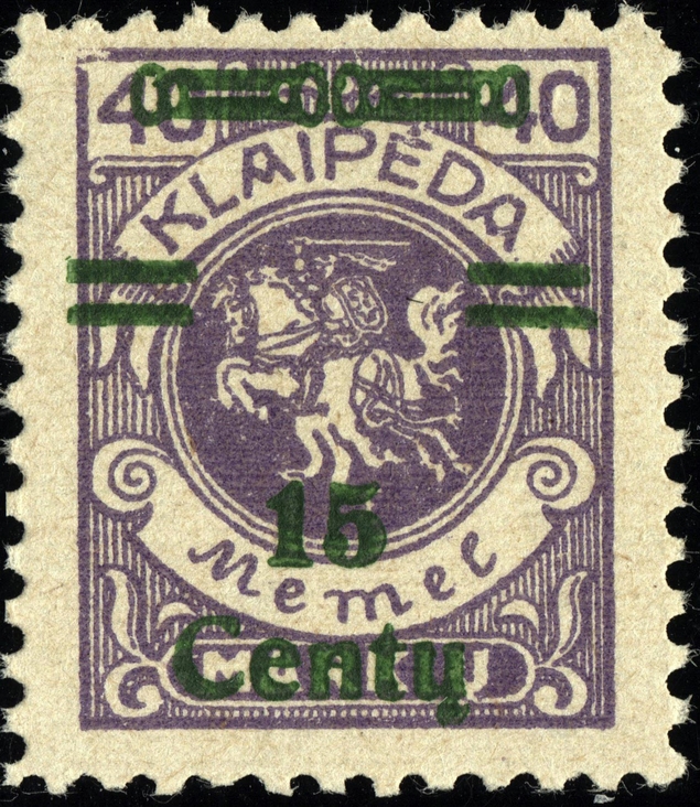 Noch immer zog sich die Einverleibung des Memelgebietes in Litauen hin. Infolge dessen benötigte man weiter Postwertzeichen für den "Status Memelgebiet". Für die hohe Wertstufe "1 LITAS" hatte man das Problem gelöst, in dem eine II.Platte der Mi.-Nr. 192 gedruckt wurde (siehe dort). Für die gebräuchlichen Werte zu 15 CENT.; 25 CENT. und 30 CENT. ging man ähnlich vor. Auch hier wurden die reichlichen Restbestände der Wappenreiterausgabe (Mi.-Nr. 141 - 150) als Urmarken für eine neue Aufdruckausgabe genutzt, und zwar alle Werte. Entsprechend der verschiedenen Wertangaben der Wappenreitermarken mußte man auch einen Aufdruck in verschiedenen Formen setzen, um die Wertangaben zu annullieren.