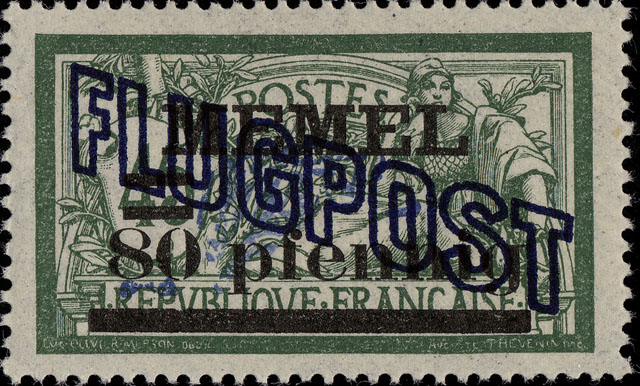 "Mit Genehmigung des Herrn Oberkommissars für das Memelgebiet werden vom 6. Juli ab zur Freimachung von Flugpostsendungen Flugpostmarken zu 60, 80 Pf. l, 2, 3 und 4 Mark herausgegeben. Die Wertzeichen sind zwecks bessere Kenntlichmachung der Flugpostsendungen und deren Unterscheidung von anderen Postsendungen bestimmt. Die neuen Wertzeichen sind derartig hergestellt, dass die genannten Werte der französischen Überdruckmarken von links oben nach rechts unten meinen einem neuen blauen Überdruck "Flugpost" versehen worden sind. Memel, den 5. Juli 1921. Landes-Postdirektion"