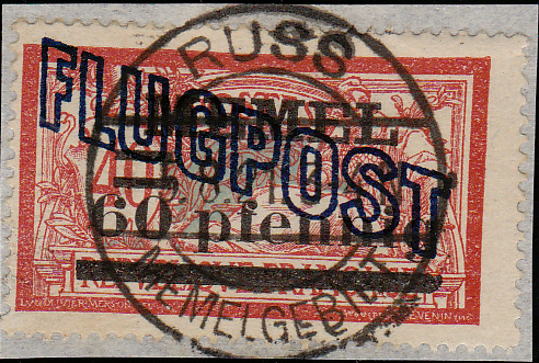 "Ab 3.April 1921 findet täglich ein Flugpostdienst zwischen Danzig-Königsberg-Memel statt. Sendungen sind mit der Aufschrift "Durch Flugpost" zu kennzeichnen."