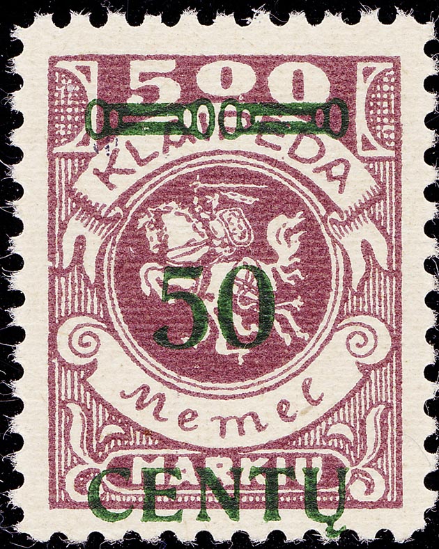 Feld: I/38 "K" in KLAIPEDA links abgebrochen Feld: II/2 weißer Fleck an der "3" von 300 oben rechts Feld: III/15 rechte Ecke im Unterrand abgeschliffen Feld: III/80 "K" in KLAIPEDA im rechten oberen Strich durchbrochen